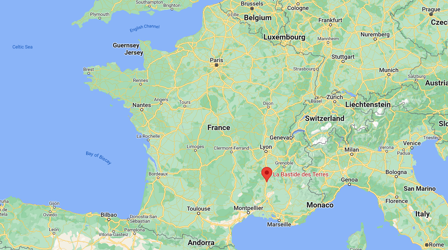 The wedding venue is La Bastide des Terres, 70 Chemin de Chabrier, 26270 Mirmande, France.